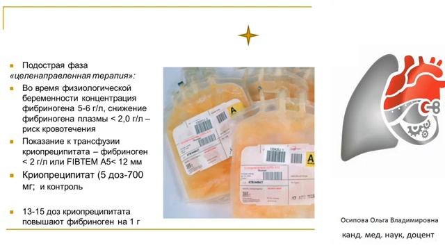 Заместительная гемеомпонентная терапия при массивном послеродовом кровотечении. Осипова О.В.