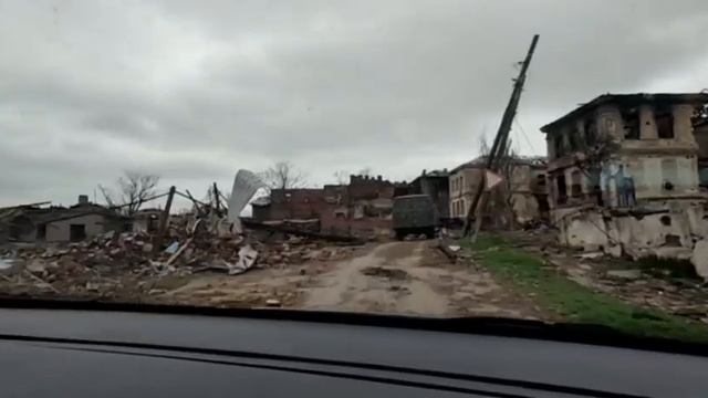 Дорога по разрушенному Мариуполю.