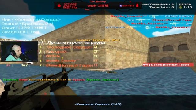 Поддержать стримера (говорящий донат на экран): https://donationalerts.com/r/kn1fetv НАШ САЙТ - https://cs16cccp.ru/ ГРУППА ВК - https://vk.com/cccp_game_arena --------------------------------------------------------------------------— СЕРВЕРЫ: 1. СССР - 46.174.53.36:27015 2. СНГ - 45.136.204.173:27016 3. ИНТЕРНАЦИОНАЛ - 45.136.204.173:27015 --------------------------------------------------------------------------— Скачать клиент игры - https://cs-net.ru/ ---------------------------------------------------------------------------- Мой личный ВК: https://vk.com/kn1fetv Мой Твич: https://www.twitch.tv/kn1fetv PC Игровой ПК: Видеокарта - GeForce RTX 3060 Ti Процессор - Intel Core i9-11900, 3700 MHz Оперативная память - 2хHyperX Predator 16GB Материнская плата - Asus ROG Strix Z590-F Gaming WiFi Монитор - 31.5” GAMING-монитор Odyssey G7 (R1000, 240Hz) Второй Монитор - 27" Samsung C27F390FHI Твердотельный накопитель - 500GB HYPERPC PRO M.2 Жесткий диск - HDD Toshiba 1 TB HDWD110EZSTA Периферия: Мышь - Logitech G403 Клавиатура - SteelSeries Apex 71 Веб камера - AVerMedia Live Streamer CAM 313 Звук: Наушники - A4 Bloody G528C Микрофон - RODE PODMIC Микшер - TC Helicon Go XLR Mini