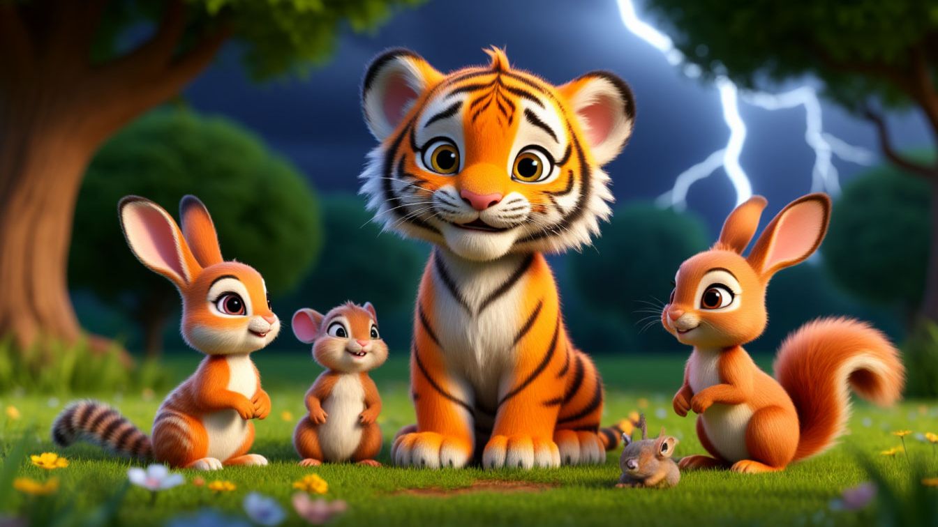 Мультик Тигренок полосатый гуляет в лесу