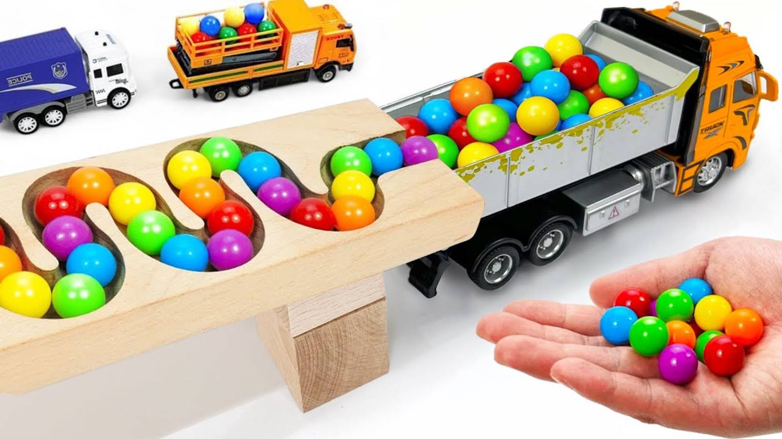 Для детей игры. Гонка шариков волновой склон. Экскаватор, Мусоровоз, Самосвал, Скорая помощь