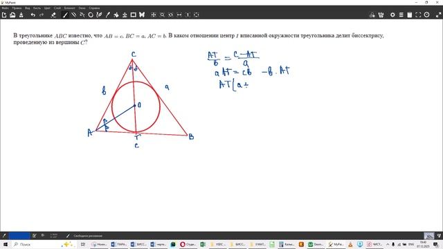 БИССЕКТРИСА - ОТНОШЕНИЕ, В КОТОРОМ ЦЕНТР ВПИСАННОЙ ДЕЛИТ БИССЕКТРИСУ