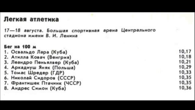 17 August 1984 Moscow Friendship Games, Lenine Stadium 100m men 1. Osvaldo Lara (Cuba) 10.17 2. Attila Kovács (Hungary) 10.18 3. Leandro Peñalver (Cuba) 10.21 4. Arkadiusz Janiak (Poland) 10.29 5. Thomas Schröder (GDR) 10.33 6. Nikolai Sidorov (USSR) 10.35 7. František Ptáčník (Czechoslovakia) 10.35 8. Andrés Simón (Cuba) 10.36 Although Friendship Games officials denied that the Games were a counter-Olympic event to avoid conflicts with the International Olympic Committee, the competition was often dubbed the Eastern Bloc's "alternative Olympics". (Wikipedia). Athletes learned in May 1984 that they would be barred to competed at the Olympic Games due to the boycott. Druzhba-84 in Moscow (men) and Prague (women) was not really a consolation... Their motivation suffered but athletes still managed to produce outstanding performances, often surpassing results achieved by their Western-world rivals a few days earlier. It’s no offense to Osvaldo Lara to say that it’s very unlikely that he would have beat Carl Lewis in Los Angeles. The American indeed won in 9.99 (wind +0.2). However, the Cuban ran 10.17, into 0.4 wind, faster than the Olympic silver and bronze medalists Sam Graddy (10.19) and Ben Johnson (10.22). The Friendship Games winner was interviewed by Legkaya Atletika (10/1984) : "I am coming to Moscow not for the first time. And again I find myself in an atmosphere of friendship, camaraderie, and support. Soviet athletes have become real friends to me, with whom I can always consult and from whom I can learn a lot. We, Cuban sprinters, hoped to become winners in the 4x100m relay here, at the 'Friendship' competitions. And when we were preparing for the Olympic Games, we aimed not to yield to the Americans, although, as you know, they are particularly strong in sprinting. And unexpectedly, we lost to the Soviet team. This happened because your athletes surpassed us in relay technique and performed with great spirit. Currently, I am studying in my third year at the Institute of Physical Education in Havana. I have managed to achieve a good athletic form in the 100-meter dash and I want to meet with the Olympic champion Carl Lewis." 3 days later in Budapest, on August 20, he met Carl Lewis who won the race as expected in 10.05, while Lara placed 3rd in 10.28, edged by his Moscow runner up Kovacs, 10.27. Ben Johnson was 5th in 10.33. Osvaldo Lara died on January 2, 2024, aged 68.