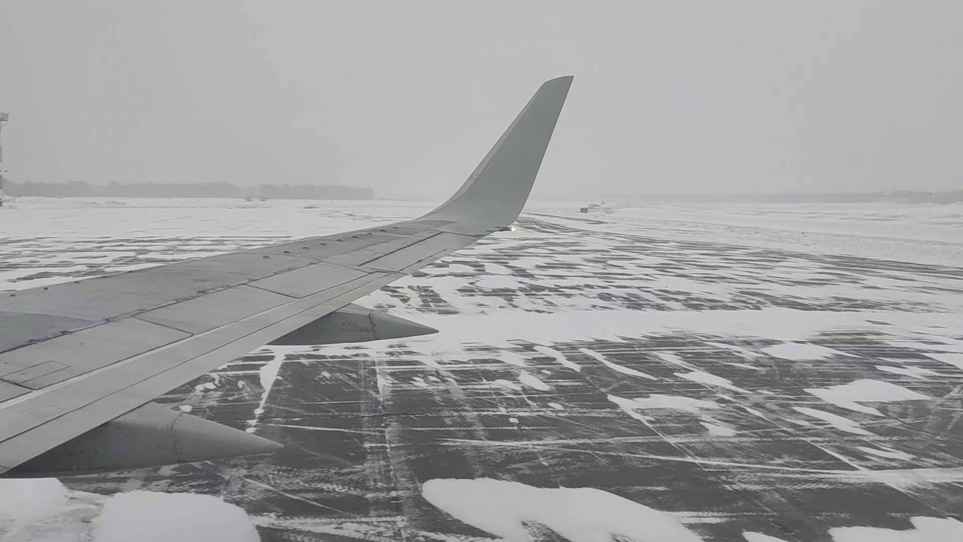 Посадка самолета. Аэропорт Когалым. В условиях плохой видимости. Из окна самолета. 2.04.2025