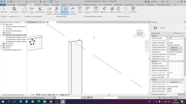 Модификатор УКОРОТИТЬ в ревите (вкладка СТАЛЬ)