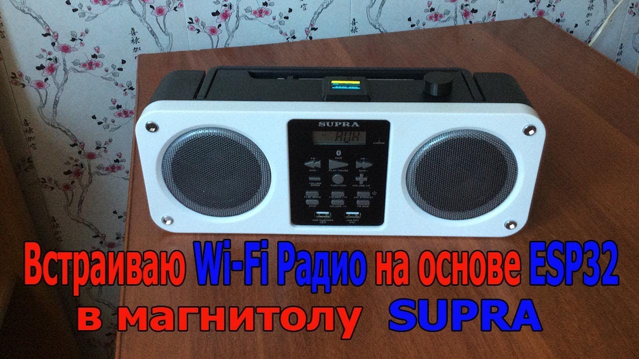 Встраиваю wi-fi радио на основе модулей ESP32 и VS1053 в магнитолу Supra BB-M102UB. Магнитолу приобретал специально для расширения её функционала. - магнитолу покупал здесь: http://fas.st/EG3Ki9 - модуль ESP32: http://ali.ski/KC43T - модуль VS1053 (синяя): http://ali.ski/qf-_I или (красная): http://ali.ski/7xyHE2 - OLED дисплей 0,96 дм: http://ali.ski/M-wsPS - энкодер (1шт): http://ali.ski/Fm5wpa или (5 шт.): http://ali.ski/E3vJn - коннектор (мама): http://ali.ski/fkgcoJ - коннектор типа гребенка (папа): http://ali.ski/EM6fok - соединительные провода: http://ali.ski/1TVSe - макетные печатные платы: http://ali.ski/wwldk - архив деталей для печати на 3Д принтере: https://yadi.sk/d/6mZLwkQcTjLt3w - архив с необходимыми программами и прошивкой: https://yadi.sk/d/HyZ42TKi3WM2ML