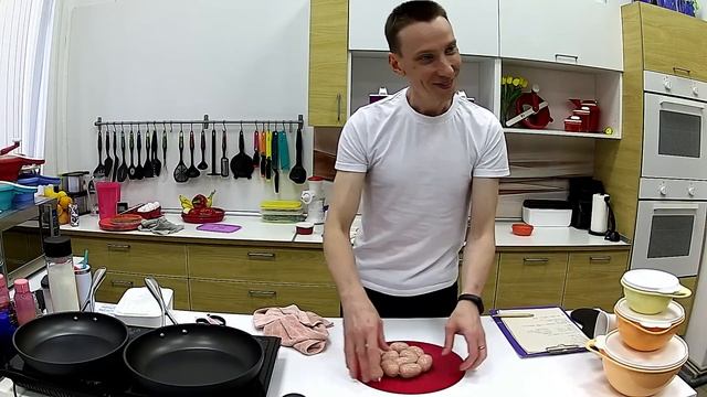 Картофельные оладьи с грибами, сосиски по корейски, жареные бананы