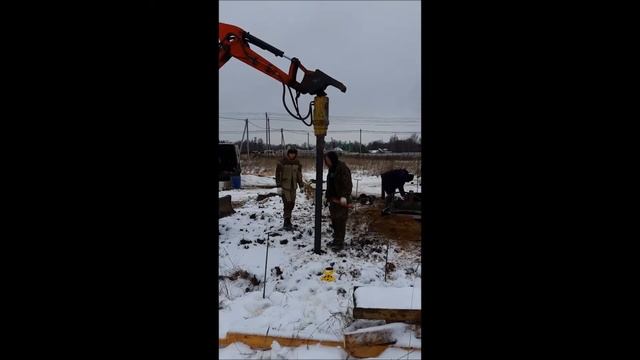Свайно-винтовой фундамент. Процесс закрутки сваи