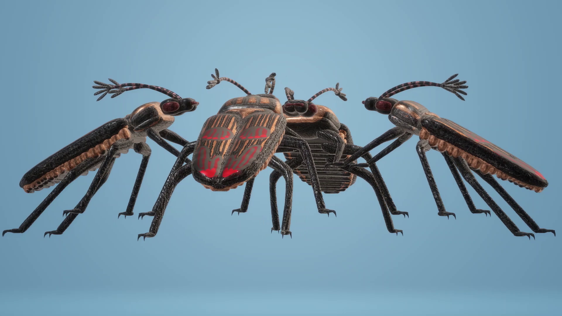 Жуки на голубом фоне. Рисунки 3D, видео без звука