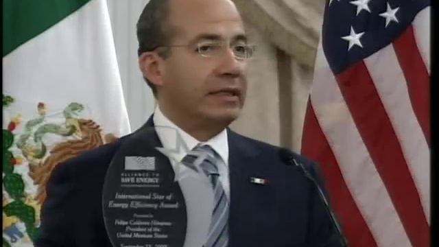 Miércoles, 23 de Septiembre de 2009 Nueva York, EUA.- En su primera actividad, el Jefe del Ejecutivo Federal recibió del Comité Directivo de Alliance to Save Energy, el Premio International Star of Energy Effiency. Con esto México se convierte en el primer país en recibir ese reconocimiento, por la promoción de la vivienda sustentable para sectores de escasos recursos. Gobierno Federal, Presidencia de la República, Felipe Calderón Hinojosa
