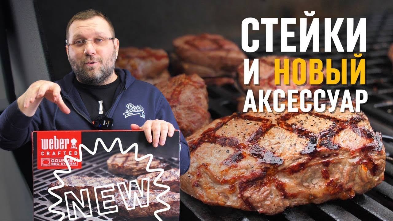 СТЕЙКИ пиканья, стриплоин и вырезка на решетке Weber crafted gbs в газовом гриле genesis new
