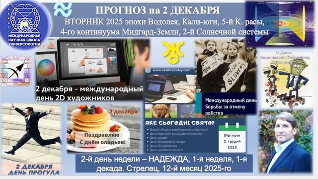 ПРОГНОЗ на 2 ДЕКАБРЯ, ВТОРНИК, день НАДЕЖДЫ, 2025, эпохи Водолея, 5-й К.расы 2-й Солнечной системы