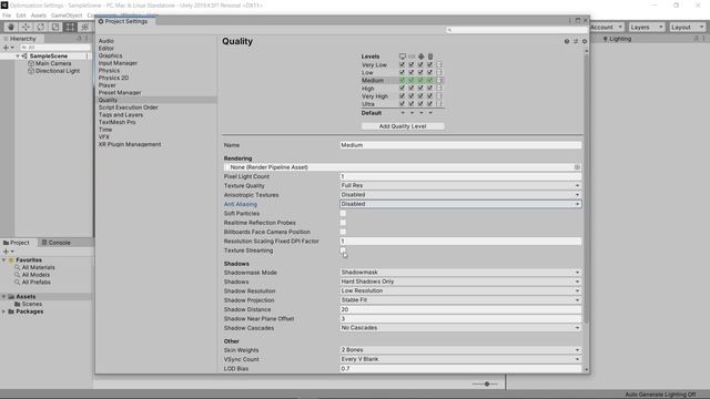 Unity 3D Optimization Settings - Part 1 (QUALITY SETTINGS)